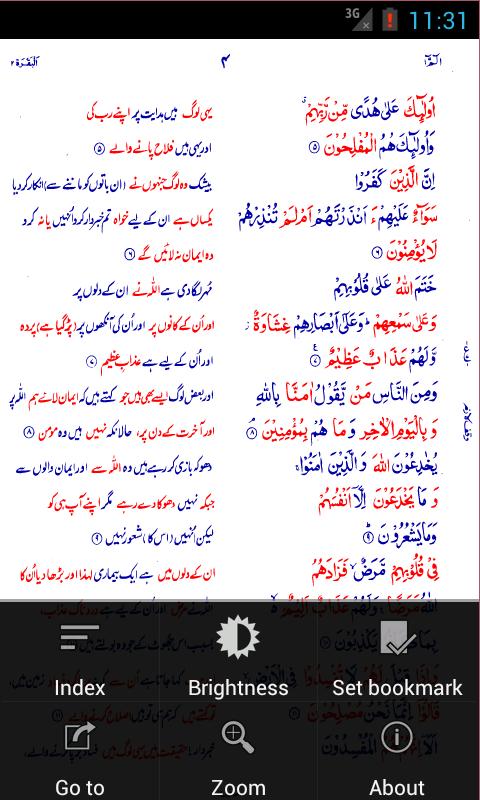 - Complete Quran with Urdu translation in two text colors