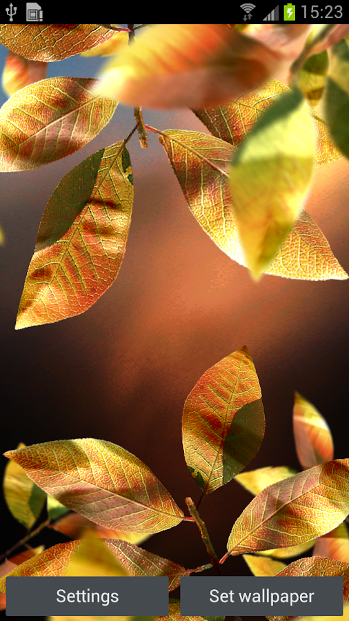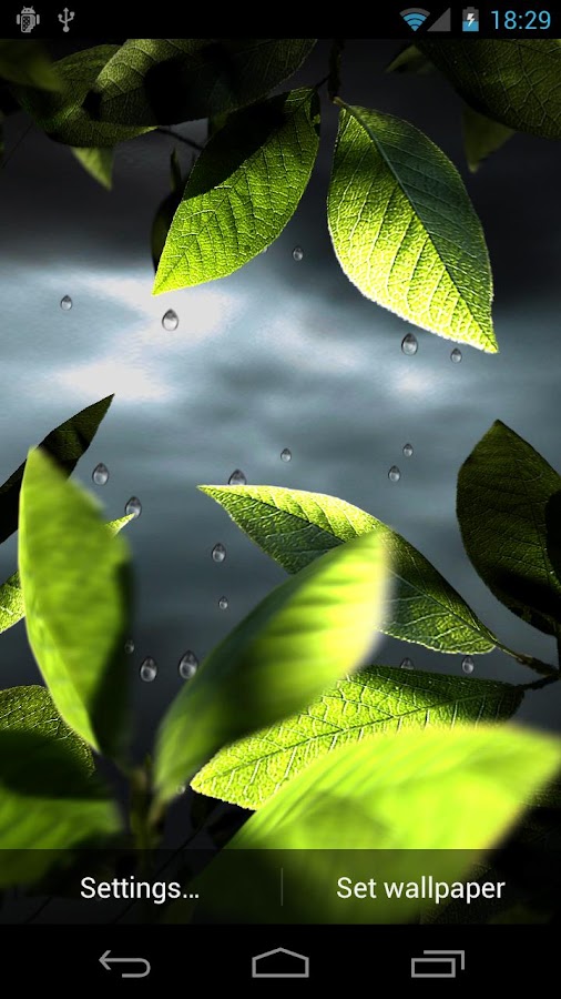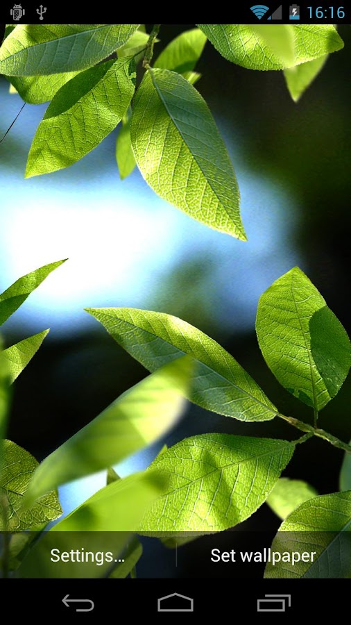 Fresh Leaves is live wallpaper. You may change backgrounds, on/off elements, and more ! All in 3D in realtime - it's not a movie.