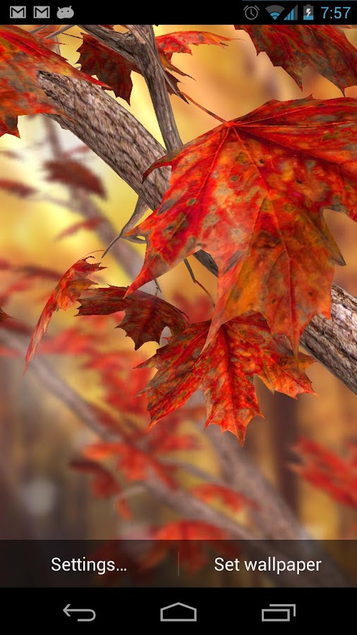 Celebrate fall with a beautiful background of autumn leaves blowing in the wind! A super-sharp foreground and soft focus background has the feel of a macro photograph, while being fully 3D rendered! Works as a daydream on 4.2+ devices!
