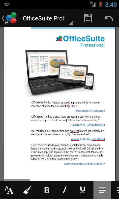 A number of manufacturers such as Sony, Amazon, Barnes and Noble, Coby, Alcatel, Archos, Pandigital, Polaroid, ViewSonic, Kyocera and Kobo trusted MobiSystems and preloaded OfficeSuite worldwide.--- File Formats Supported ---
