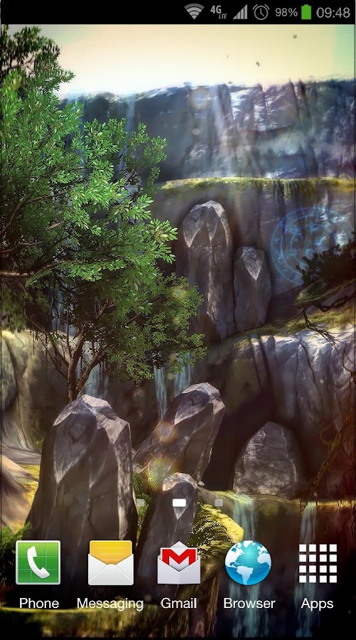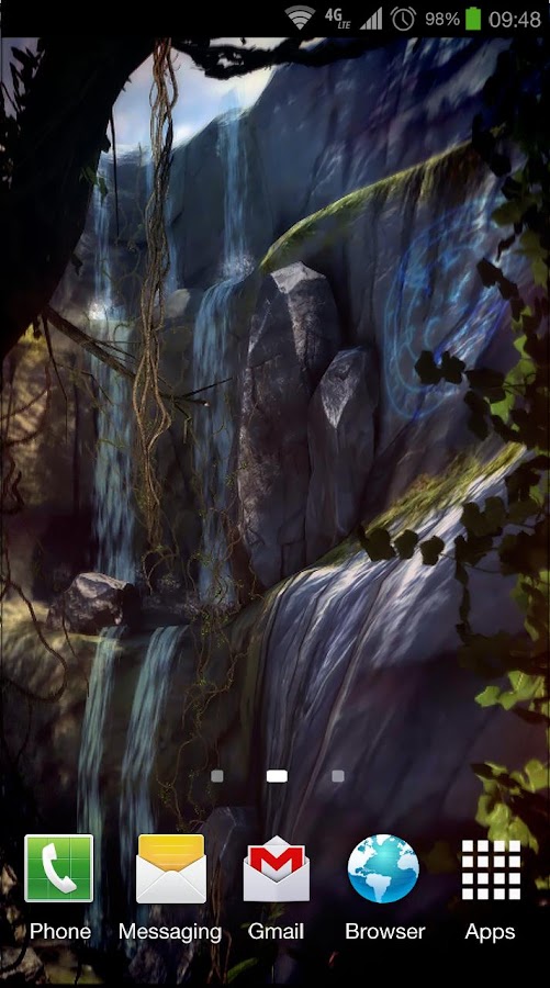 Installation: The main screen (long press) → Live Wallpaper → 3D Waterfall Pro
