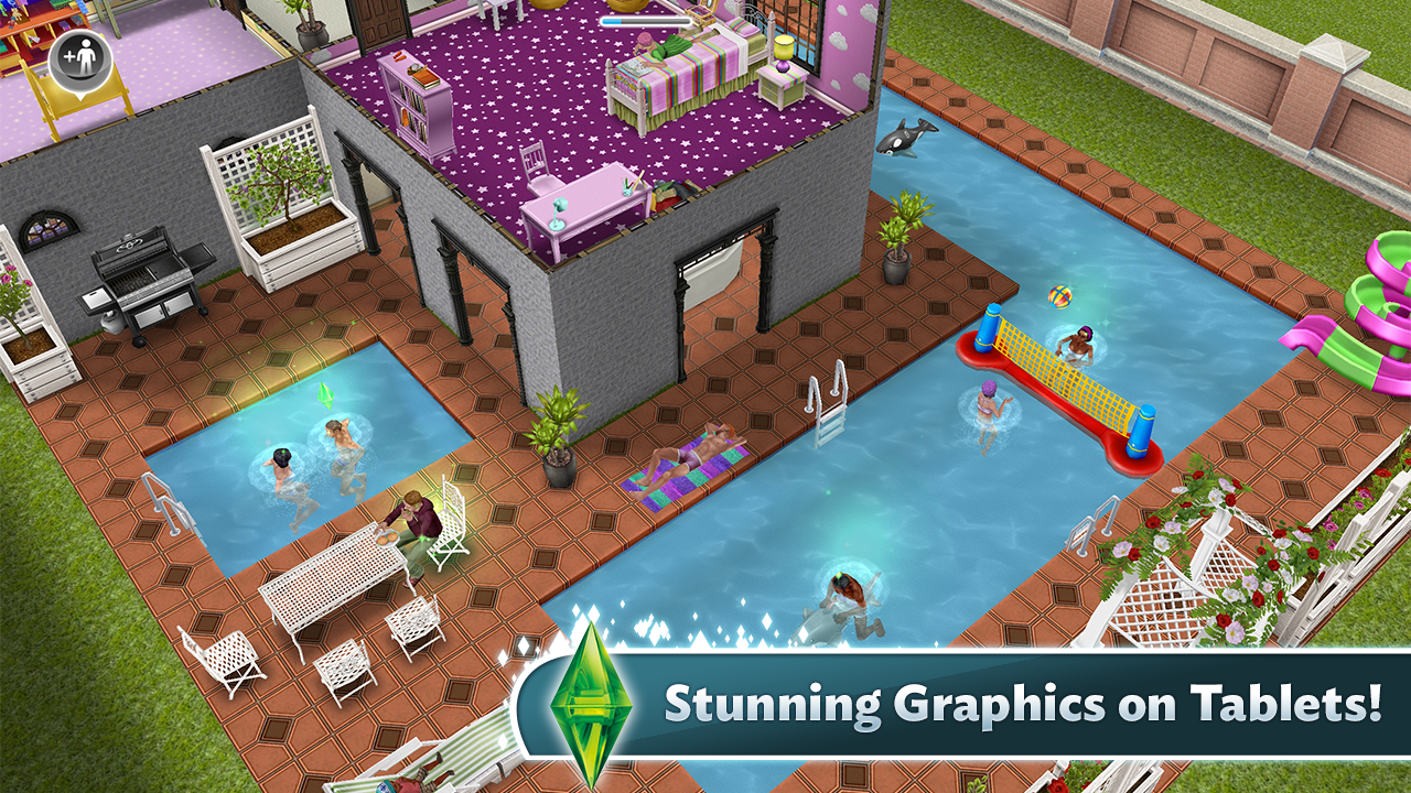 **The Sims FreePlay is an immersive, high quality game. Please note that it requires a 350MB+ download and roughly 1200MB+ free space on your device. To speed things up, we recommend connecting to WiFi.**