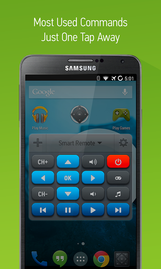 The only Smart Remote you'll need!Smart IR Remote is the only IR remote universal app for Android that you'll ever need: it's smart, with a device coverage that is huge (700000 devices, with more added daily and on request), and it's the only one that makes use of features only your phone/tablet have, that a plastic remote (like the Logitech Harmony) never will. As IR remote controls go, especially android remote controls, you'll never find one better!Not compatible with Sony phones. Of all phones/tablets by LG, only compatible with the G3 (sending only, not recording)