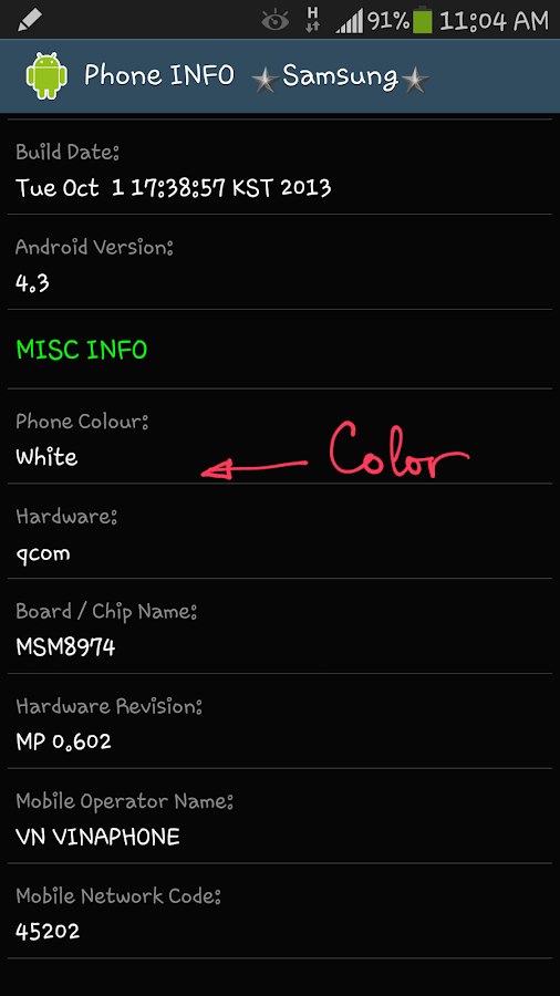 NOTE: This app works properly with the Stock Firmware. On Custom ROM some info may not show correctly.